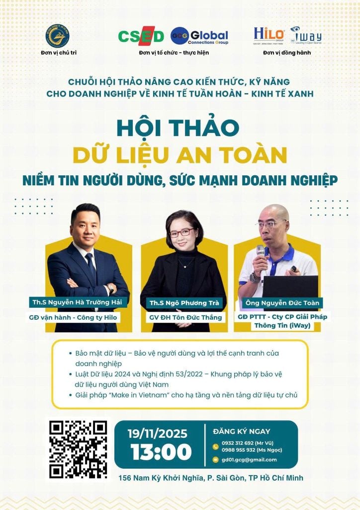 Hội thảo là cầu nối giúp doanh nghiệp nâng cao năng lực quản lý rủi ro, củng cố niềm tin khách hàng, và biến dữ liệu an toàn thành sức mạnh đột phá trong kinh doanh. Đừng bỏ lỡ cơ hội cập nhật kiến thức quan trọng và kết nối với cộng đồng doanh nghiệp quan tâm đến vấn đề an toàn dữ liệu!