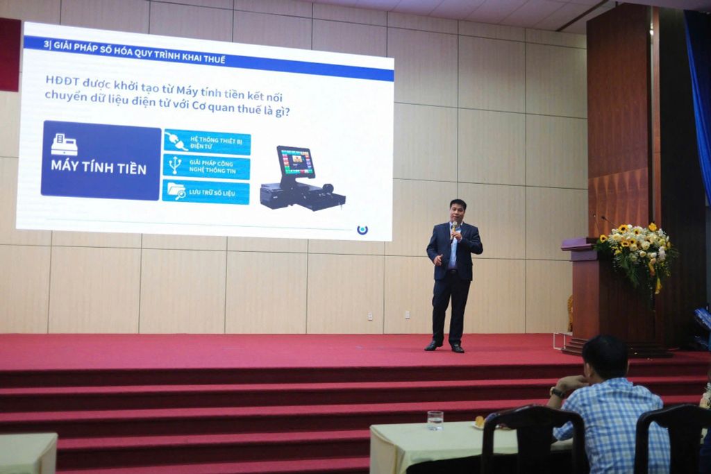 Đại diện Hilo trình bày giải pháp hóa đơn khởi tạo từ máy tính tiền cho Hộ Kinh Doanh